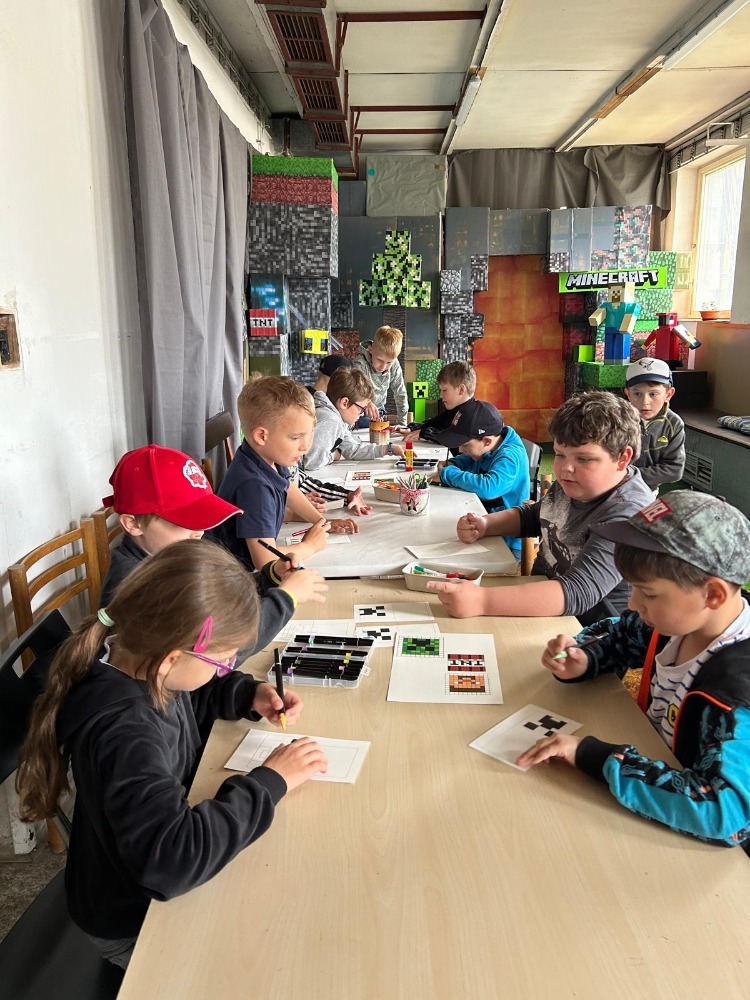 Prvňáčci ve školní družině navštívili Sítotisk v Července. Všechny děti si potiskly zvolený výrobek s jejich oblíbeným motivem Minecraft. Také pro ně bylo připraveno kreativní tvoření - výroba záložky do knihy, omalovánky atd. Na závěr si děti zahrály hry, u kterých si užily spoustu legrace. Odpoledne v Sítotisku se moc vydařilo.
