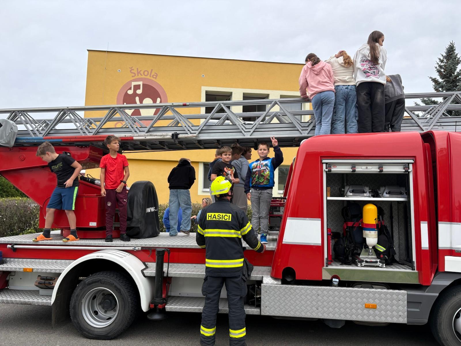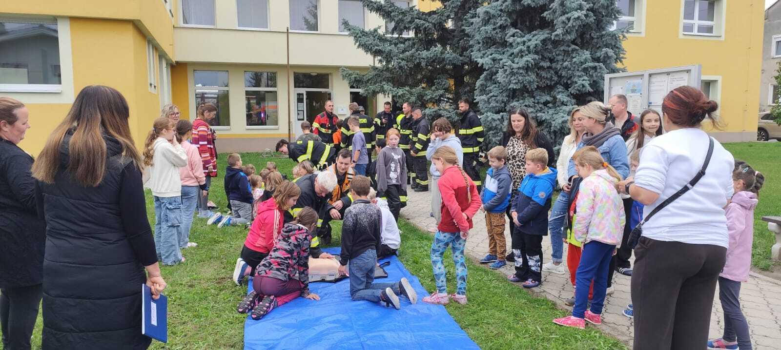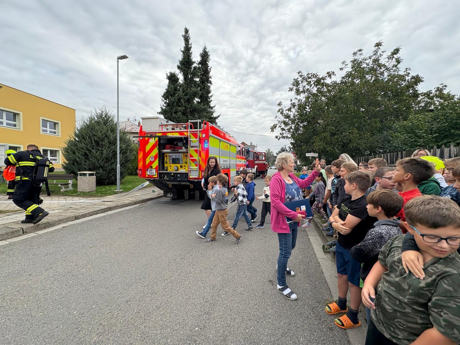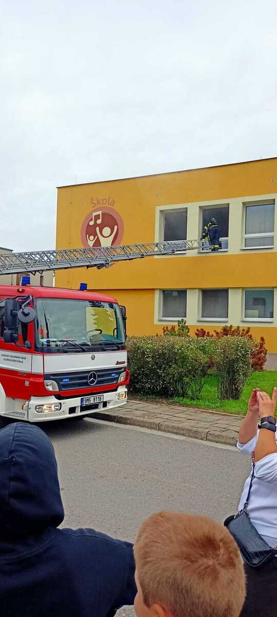 Ve čtvrtek 18. září proběhlo na naší škole taktické cvičení hasičských sborů z Litovle a Tří Dvorů. Chodbami školy se šířil uměle vytvořený kouř a byl vyhlášen požární poplach. Žáci a zaměstnanci školy se přemístili na určené místo. Následně přijely hasičské hlídky a bylo jim sděleno, že ve škole zůstaly tři osoby (předem domluvení dva stateční žáci z pátého ročníku a paní školnice). Se svolením velitele hasičů se mohli všichni evakuovaní přemístit zpět před školu a sledovat, jak probíhá záchrana ohrožených osob. Po chvíli byly zachráněné osoby bezpečně vyvedeny ze školní budovy v dýchacích maskách, které si pak přihlížející mohli také vyzkoušet. Kromě toho si žáci zkusili základy první pomoci a prohlédli si hasičskou techniku. Na závěr se všichni společně vyfotili.