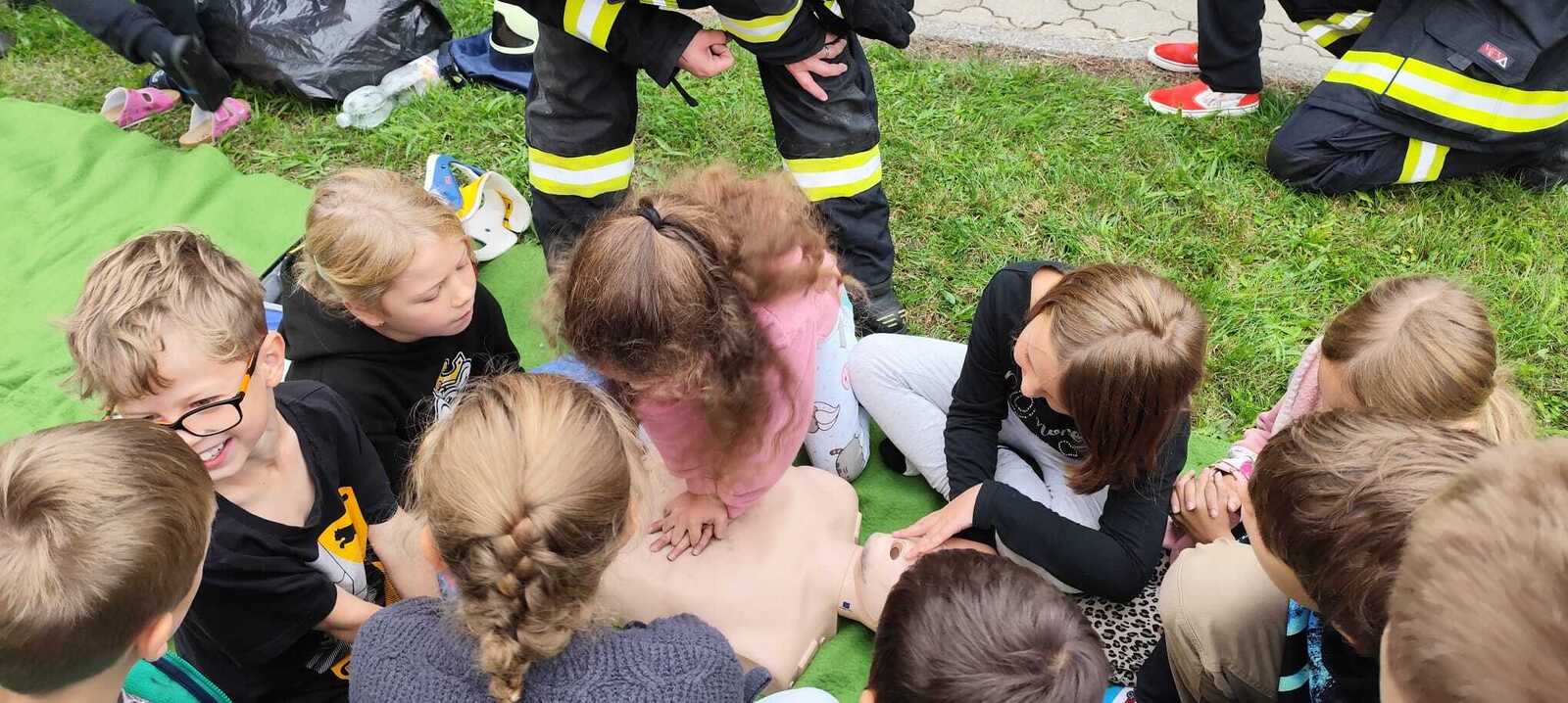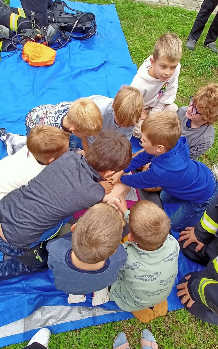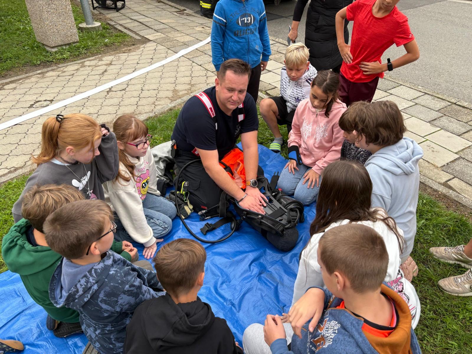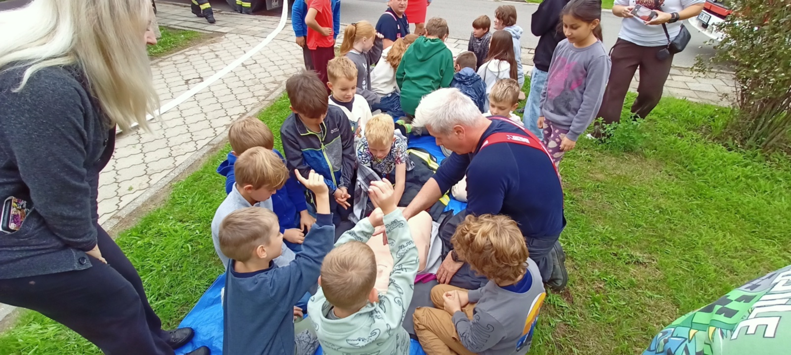 Ve čtvrtek 18. září proběhlo na naší škole taktické cvičení hasičských sborů z Litovle a Tří Dvorů. Chodbami školy se šířil uměle vytvořený kouř a byl vyhlášen požární poplach. Žáci a zaměstnanci školy se přemístili na určené místo. Následně přijely hasičské hlídky a bylo jim sděleno, že ve škole zůstaly tři osoby (předem domluvení dva stateční žáci z pátého ročníku a paní školnice). Se svolením velitele hasičů se mohli všichni evakuovaní přemístit zpět před školu a sledovat, jak probíhá záchrana ohrožených osob. Po chvíli byly zachráněné osoby bezpečně vyvedeny ze školní budovy v dýchacích maskách, které si pak přihlížející mohli také vyzkoušet. Kromě toho si žáci zkusili základy první pomoci a prohlédli si hasičskou techniku. Na závěr se všichni společně vyfotili.