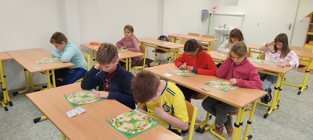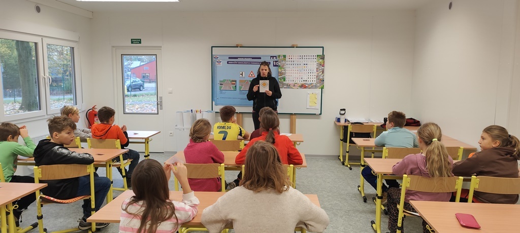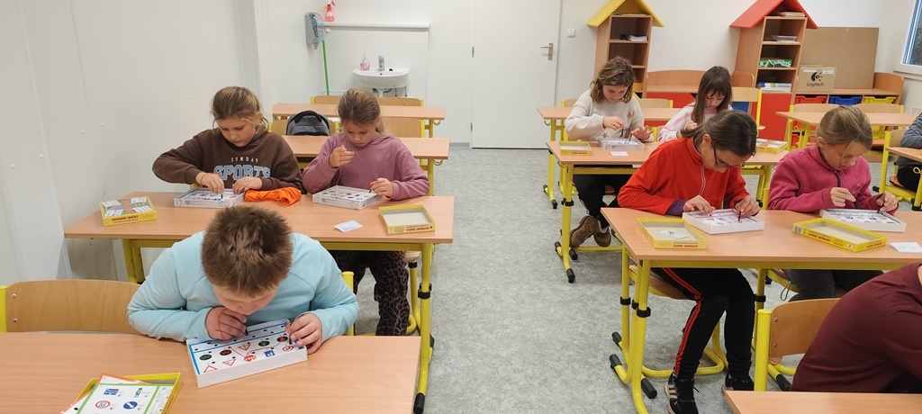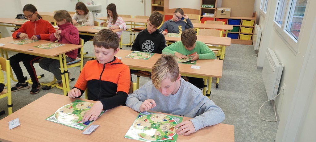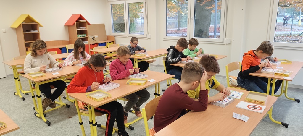 Čtvrťáci se v rámci cyklistické průpravy v druhé lekci zaměřili na procvičování dopravních značek a křižovatky. Nejprve si zopakovali základní pravidla pohybu v provozu a poté si zkoušeli sami zvládnout dopravní situace.